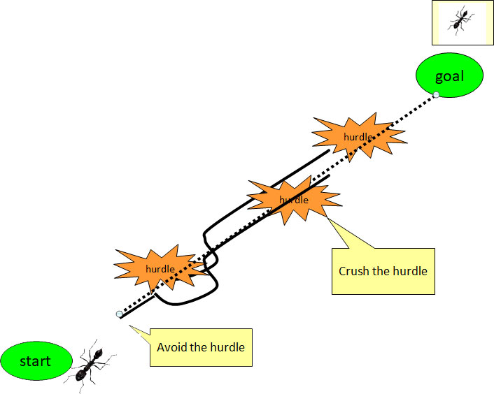 - It starts moving towards its goal without being too concerned about what is going to come on its way.